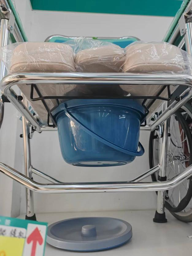 記者注意到,目前線下門店所售移動馬桶的價格由200多元到800多元不等,其中帶輪子的移動馬桶價格較高。此外,大部分移動馬桶采用上下寬度一致的設(shè)計,并未采用上窄下寬的結(jié)構(gòu),記者在試用時發(fā)現(xiàn),有的移動馬桶在坐下和起立時均會晃動,穩(wěn)定性較差。而部分移動馬桶還存在封閉性較差等問題。一款富士康牌移動馬桶的便盆和座椅之間存在較大縫隙,異味很容易從間隙中彌漫而出(見下圖)。而在康復(fù)之家厚康藥房醫(yī)療器械(軍總店),這里出售的一款魚躍牌移動馬桶封閉性較強,便盆和座椅之間縫隙較小,且座椅設(shè)計十分巧妙,平時還可當作普通椅子使用。